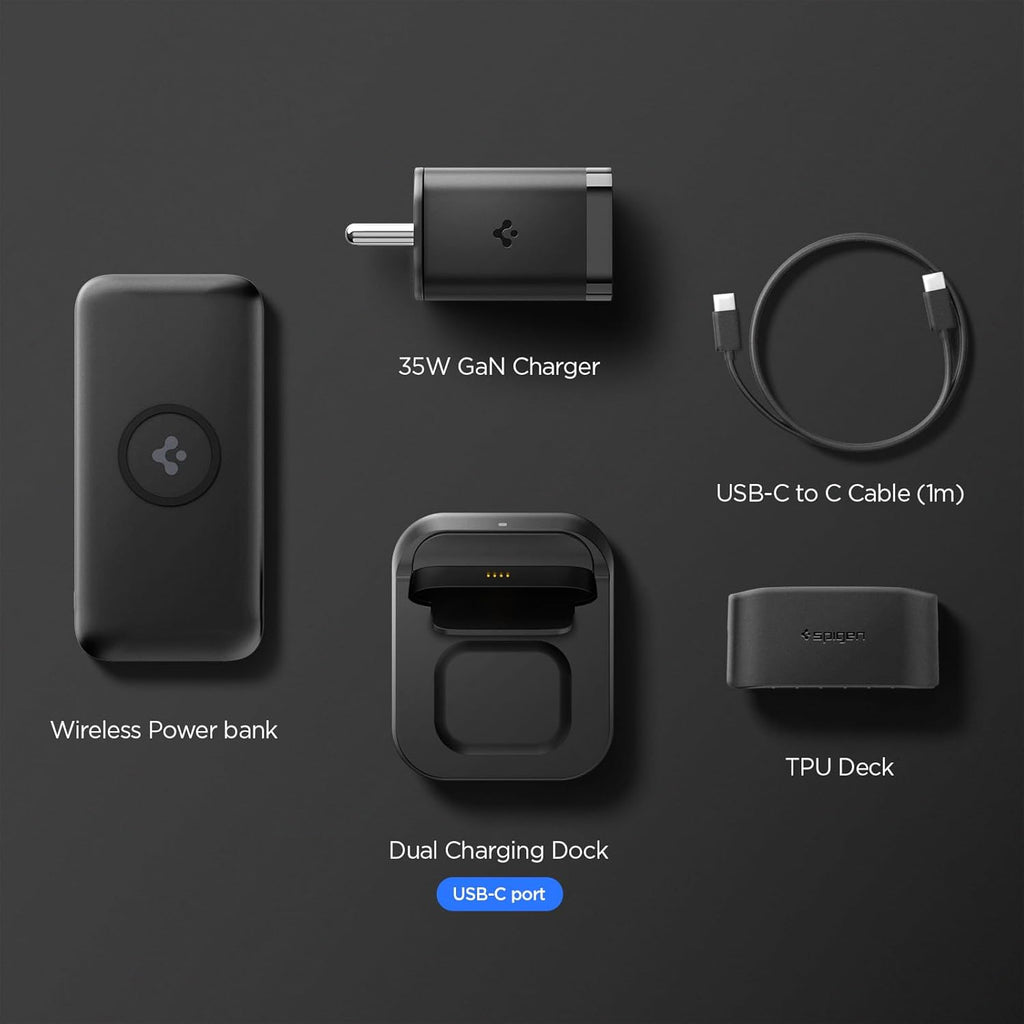 • [Package Contents] Wireless Power bank, Dual Charging Dock (USB-C Type), TPU Deck, USB-C to C Cable (1m), 35W GaN PPS Charger