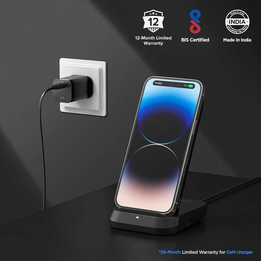 • [5 in 1] Wireless Charger | 10000mAh Power Bank | Mobile Phone Stand | Wireless Charger for TWS and Smart Watch. Easily charge 3 devices at once