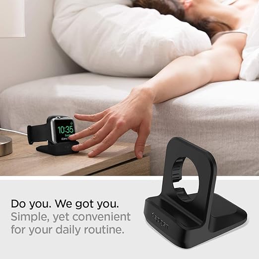 Spigen’s S350 Nightstand for the Apple Watch is made entirely of scratch-free TPU for minimal aesthetics packed with smart functionality. It features a bottom lip that cradles your watch on its side for stability that prevents your watch from swaying side to side. An exact charger cutout offers form-fitting precision that keeps things simple and easy to use.