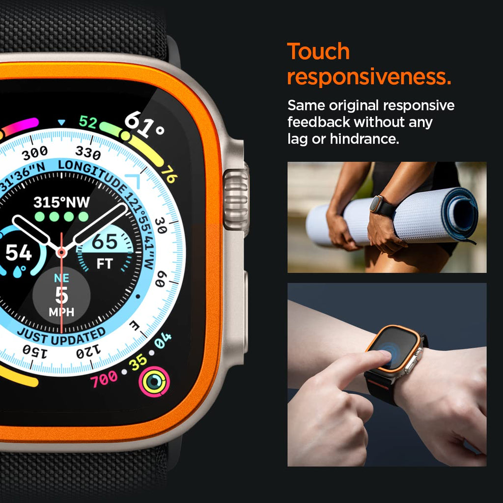 Compatibility ; Screen guard protector compatible with Apple Watch Ultra (49mm) Hassle-free access ; Waterproof & touch-responsive screen protector guarantees no delay Edge to Edge Protection ; All-around adhesive covers the screen with no lifting Notice; ONLY compatible with Apple Watch Ultra Cases (include Spigen case/cover)