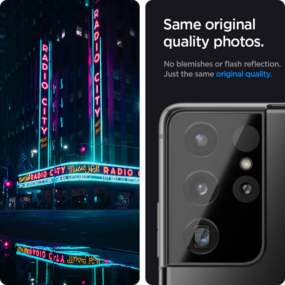 Look good, and stay safe - the newest improvement to the Galaxy S21 Ultra camera does exactly that. This screen protector lays over the cameras to allow for a clean and flat look while keeping your cameras scratch free. A simple and satisfying improvement for the perfectionist out there.