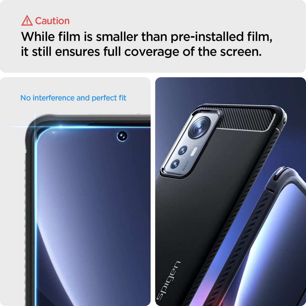Installation instructions ; Please watch the INSTALLATION VIDEO by scanning the QR code on the packaging. Compatibility ; Screen Protector Film Compatible with Xiaomi 12 Pro Case friendly ; Made case compatible with Spigen case Edge to Edge Protection ; Made of a flexible film to adapt to every curve on the infinity screen. Crystal Clear ; Extreme clarity preserves the original screen brightness