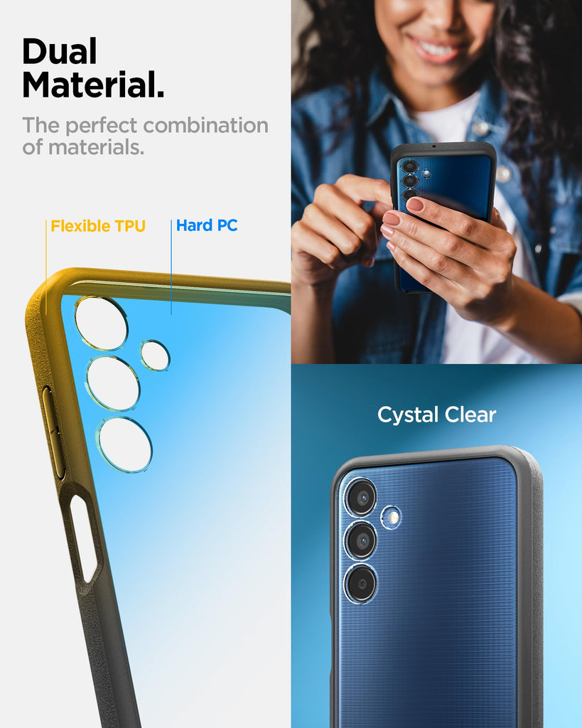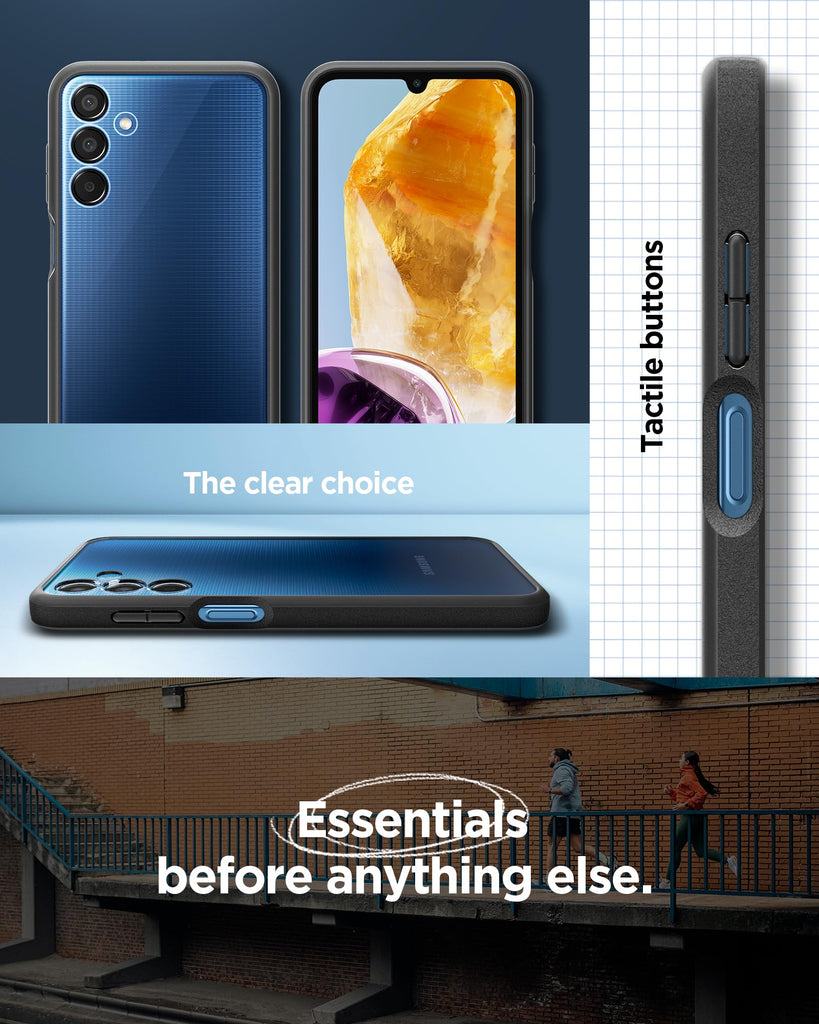 [Compatibility] Spigen Genuine Case Compatible with Samsung Galaxy M15 5G | F15 5G [Design] Unique sand texture design for optimal grip [Crystal Clarity] Crystal clear transparency, maintain your original phone design with clarity [Protection] Air cushion technology for all corner protection Raised screen edges and Camera Guard lens frame provide enhanced scratch protection [Licensed Product] Licensed under SMAPP(Samsung Mobile Partnership Program)