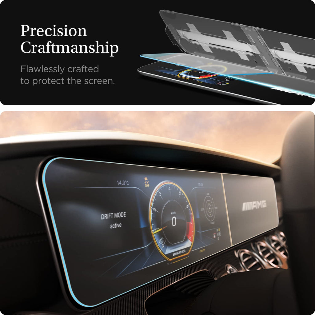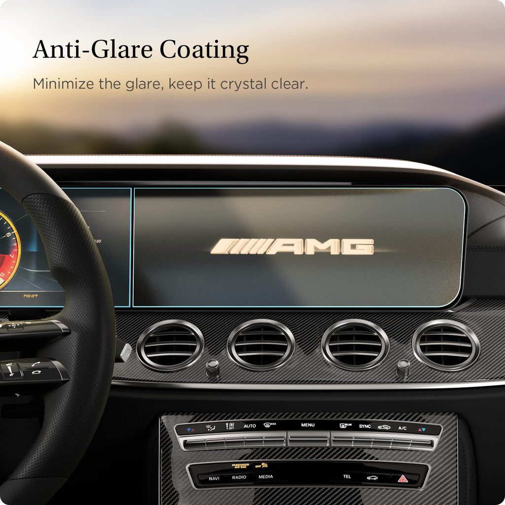 Note ; Due to its own characteristic of polarized sunglasses, rainbow effect can appear when wearing polarized sunglasses Compatibility ; Glass Screen Protector Compatible with Mercedes Benz E Class 2020-2022 / Mercedes-AMG GT 43 AG Coating ; Coated for anti-glare and anti-fingerprint purposes Oil-free ; Oleophobic coating for daily fingerprint resistance Easy Installation ; EZ Fit installation kit for an easy screen protector application experience
