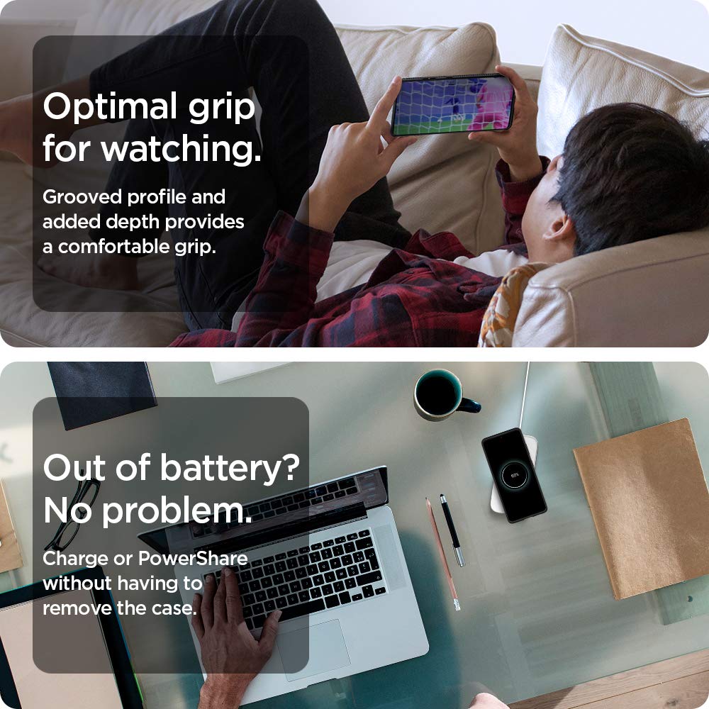 Inspired by car design, Rugged Armor® secures the Galaxy S21 Ultra in a timeless and streamlined body. Its slim frame is textured with carbon fiber detailing and subtle glossy accents.