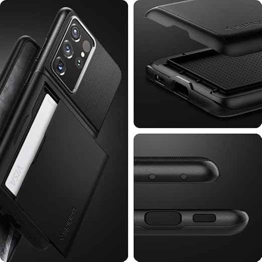 Give your phone and your pockets what they deserve. The Slim Armor® CS preserves your cards and cash and protects from daily drops so you can be sure all your essentials are safe.[Long Description]push[LayoutColor]dark[LayoutSetting]https://cdn.shopify.com/s/files/1/0808/0067/files/sd_s21ultra_sa_cs_01.jpg?v=1614202926[Text]Slim Armor CS[MainText]Time to lose the wallet.[Break]Do you. We got you.[Gallery]https://cdn.shopify.com/s/files/1/0808/0067/files/sd_img_02_copy.jpg?v=1614202945[Text]Quality & precision[TextTitle]Quality you can depend on.[TextMain]We’re a team of designers that depend on technology day-to-day just like you. With years of drop tests and prototypes, every design is constructed with the simple goal to protect with grip and style. We got you.[Gallery]https://cdn.shopify.com/s/files/1/0808/0067/files/sd_img_03_bf2b9ba5-baf1-44ee-9fa2-4852e075c171.jpg?v=1614202949[Dimension]You won't find any[Break]unnecessary bulk.[DimensionImage]https://cdn.shopify.com/s/files/1/0808/0067/files/sd_s21ultra_sa_cs_04_desktop.jpg?v=1614202924[DimensionImageMobile]https://cdn.shopify.com/s/files/1/0808/0067/files/sd_s21ultra_sa_cs_04_mobile.jpg?v=1614202924[DimensionText]Galaxy S21 Ultra,0.35,device depth/Slim Armor CS,0.19,added depth[Feature]Feature[FeatureText]More than what meets the eyes.[FeatureGallery]https://cdn.shopify.com/s/files/1/0808/0067/files/sd_img_05_a90581ce-782b-4389-9aa8-e43d9afcaab9.jpg?v=1614202947[FeatureGalleryItem]https://cdn.shopify.com/s/files/1/0808/0067/files/sd_img_06_792dd9f5-0e47-45a3-a933-48602dca807b.jpg?v=1614202949[FeatureGalleryItem]https://cdn.shopify.com/s/files/1/0808/0067/files/sd_img_07_2f83508c-bd80-4d14-a644-41f76e8473a4.jpg?v=1614202949[FeatureGalleryItem]https://cdn.shopify.com/s/files/1/0808/0067/files/sd_img_08_436ed5c2-abb3-497b-97d0-9b4e992b1b98.jpg?v=1614202949[Color]#161618[ColorImage]https://cdn.shopify.com/s/files/1/0808/0067/files/sd_s21ultra_sa_cs_color_option.png?v=1614202926[ColorBackground]https://cdn.shopify.com/s/files/1/0841/3845/files/short_d_black_161618.jpg?v=1590522692[ColorImageLast]Excellence runs in the family.[BannerText]Explore accessories built for compatibility.[BannerLink]https://www.spigen.in/collections/s21-accessories[BannerImage]https://cdn.shopify.com/s/files/1/0808/0067/files/accessories_banner.jpg?v=1612468015[BannerImageMobile]https://cdn.shopify.com/s/files/1/0808/0067/files/accessories_banner_mobile.jpg?v=1612468014[Accordion]Dimension,3.17 x 6.70 x 0.59 inches[SectionDiv]Product Weight,1.8 ounces[SectionDiv]Package Weight,2.7 ounces[Section]Durable PC, Polycarbonate[SectionDiv]Flexible TPU, Thermoplastic polyurethene[Section]Samsung,Galaxy S21 Ultra 5G[Section]Dual-layered for extreme drop-protection[SectionDiv]Stores up to two cards and cash (Remove before wireless charging)[SectionDiv]Slim design stays pocket-friendly[SectionDiv]Mil-grade certified with Air Cushion Technology®[SectionDiv]Compatible with wireless and reverse charging